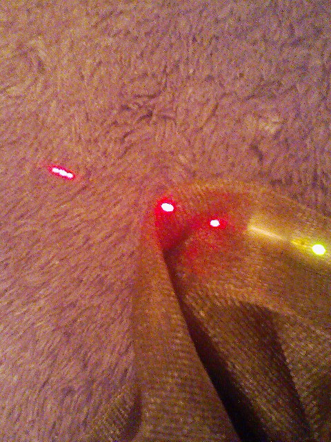ホクロ取りなどにも使われますが、神経の側ではチカチカした痛みがするそうです。ポインターの光を手に当てると、その位置が少し暖かくなります。レーザーメスは患部を焼き切ります。
